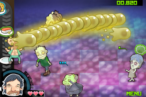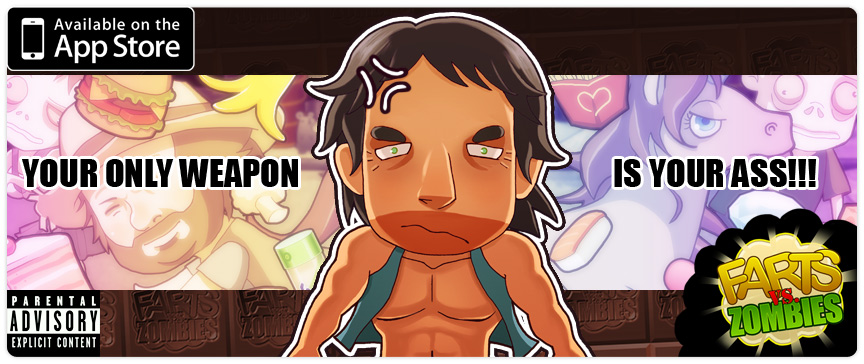 Farts VS. Zombies: Are you ready?◦ Platform: iPhone and iPod Touch Do you get sick of zombie games and fart apps flooding the App Store? Colonel John Farter is an American officer who spent seven years in a North Vietnamese POW camp, then escaped. He just recently came back, and discover his town full of zombies and his only weapon is his ass. He mets up with his old friend Banana Max and together, they will launch a mission to free the town from The Evil Unicorn and his army of zombies. In Farts VS Zombies you have to kill zombies with farts, you draw with the finger the path of the farts and direct them to their faces. The game goal is to protect the japanese schoolgirls from the attack of the zombies as much time as possible. In fact, zombies hate farts, it’s the only thing that can kill them, well… not the only one really. But the game is more than that, you can do Fart Combos, use funny Special Attacks and items and compete in online rankings with your friends to see who is the best farter! ◦ Bonus Stages!