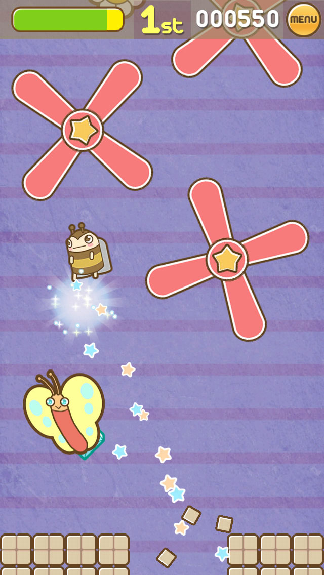 In JetBee, players compete in go-up races, controlling Bimmy, a bee with a jetpack.
