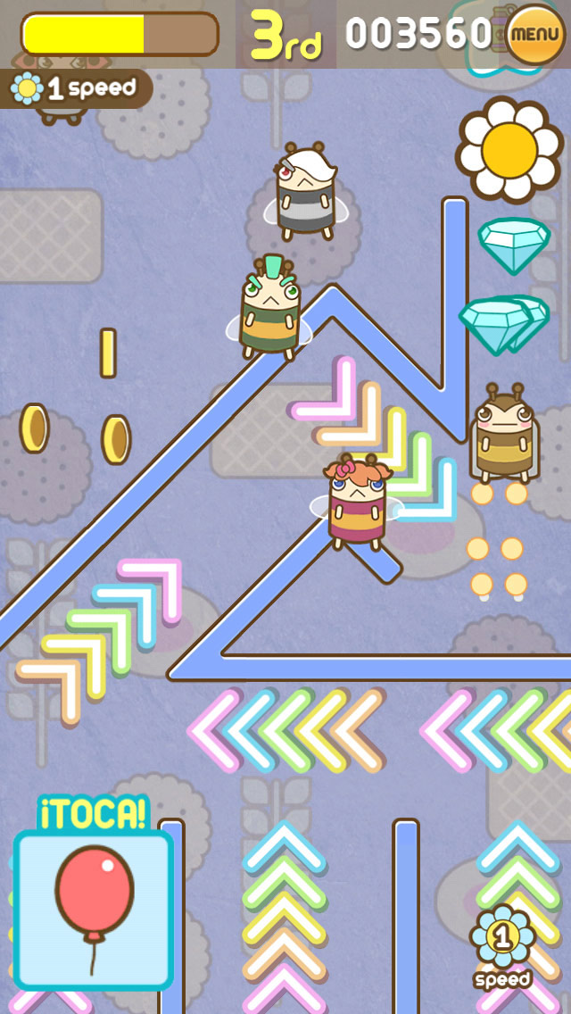 Get your rivals out of your way catching and using special items placed on the courses: Speed boost flowers, poison grenades, M'Fly the bodyguard fly,...