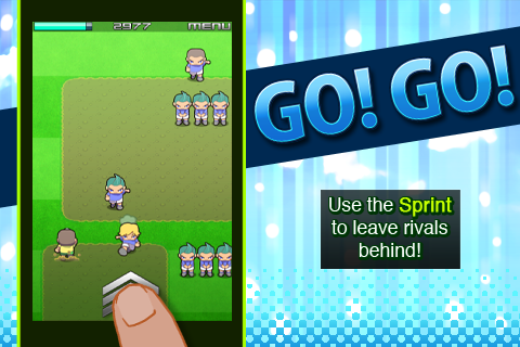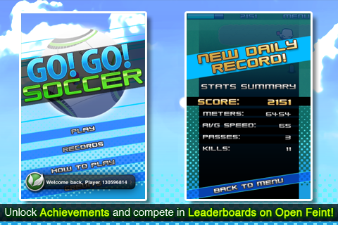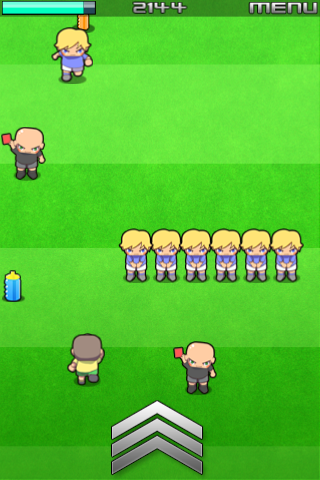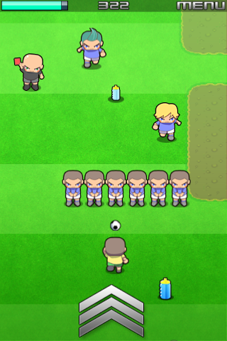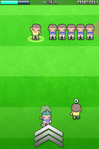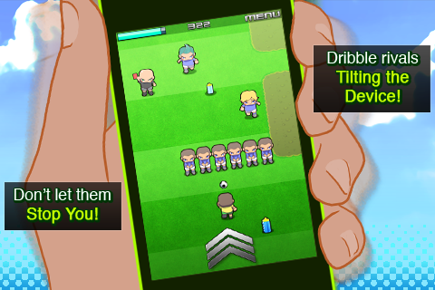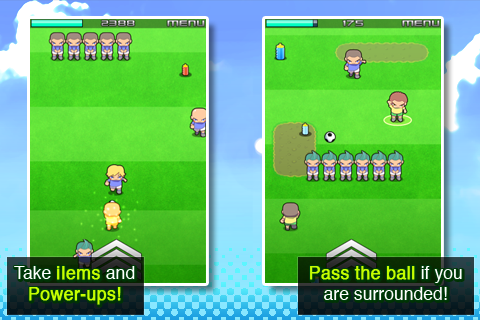 Go! Go! Soccer: Run Run Run!◦ Platform: iPhone and iPod Touch In Go! Go! Soccer, you guide a footballer tilting your device to avoid rivals coming from everywhere to stop you, and always finding the best path to reach the goal. Use the sprint in hard situations, but watch your stamina or you´ll get caught! Pick-up and use items and power ups like a "Mario Star" and if you see a team mate pass the ball! Laugh with pleasure as you stamp on your rivals and live the excitement of dodging dangers on the go: The Fun of Soccer!